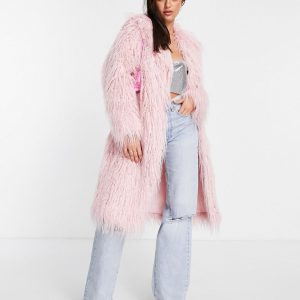 Faux Longline Coat in Light Pink